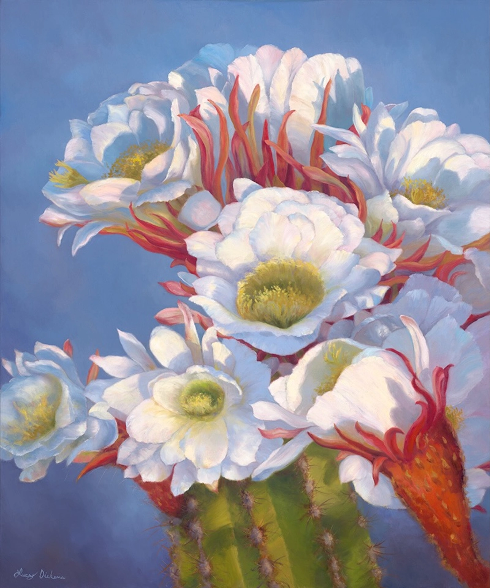 One of the most striking contrasts in the desert is the vibrant, fiery blooms of the prickly pear cactus set against her distinct pads. These delicate petals in orange, yellow, and red appear ablaze and wildly alive amongst the thorns. There is a softness yet great strength, beauty and vitality amid harsh conditions. The promise of spring emerges once again, a beacon of hope.